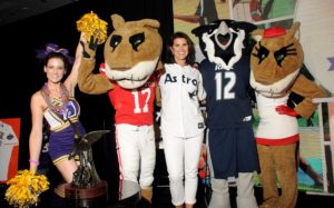PC Moment: Not really a “gala” gala, this laid back evening featured several interactive experiences including virtual skeet shooting and driving range, live painting by artist Taft McWhorter, and tailgating with the University of Houston mascot, Shasta, and Rice University’s mascot, Sammy the Owl. The 550 guests dressed accordingly in school jerseys, jeans and other game day gear.