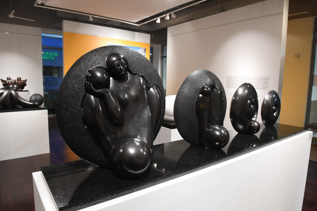 Art of the World is one of the few galleries in the country to represent the Costa Rican artist, and he seldom visits the United States from his home base in Carrara, Italy. Thus, the evening had significant import for both collectors and devotees of his fluid human forms that are caressed in robust spheres and his abstract figures included the artist’s acclaimed Genesis series. As PaperCity ‘s executive editor of visual arts and features Catherine Anspon notes, Jiménez Deredia’s work embraces “synthesized traditions of Pre-Columbian civilizations of his native country, with the lessons of the Italian Renaissance.”