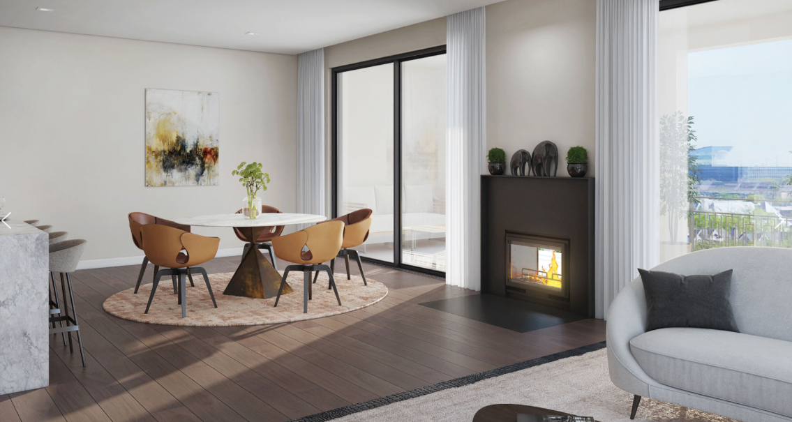 There was already buzz in the Montrose neighborhood as a billboard with an image of the high-end residential project had already gone up at the corner of Fairview and Commonwealth. Mirador Group architect Jerry Hooker explains that the eye-catching brick design echoes the work of modernist designers Charles Rennie Mackintosh and Walter Gropius.