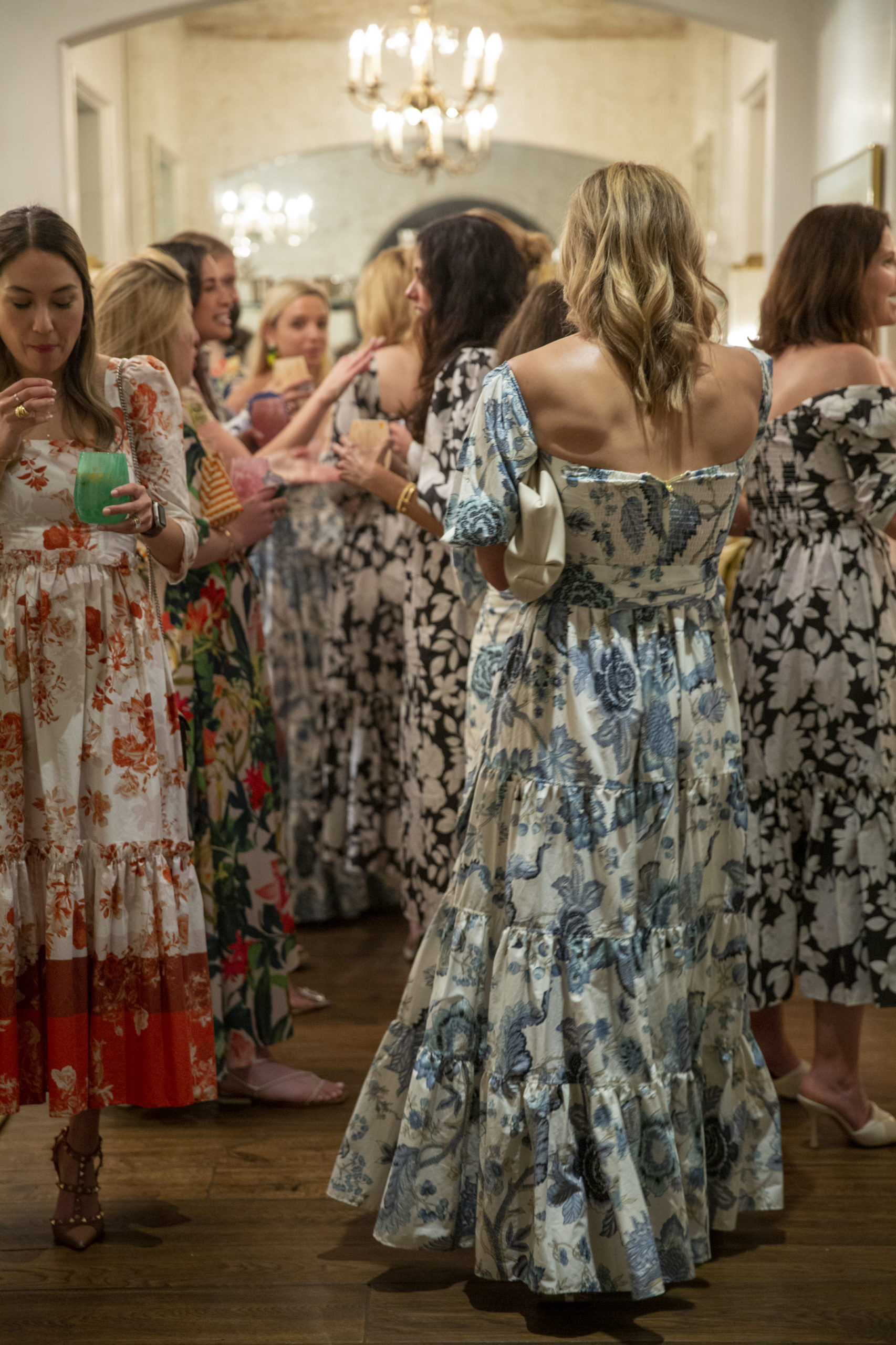 The dinner followed a daylong pop-up shop at The Avenue‘s storefront on Westheimer on the edge of River Oaks, where the Cara Cara florals on this day mesmerized the fashionable femmes. The popularity of the trés feminine frocks and admiration for the designers was evidenced in the number of guests that arrived in Cara Cara gowns and separates.