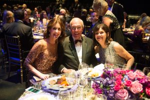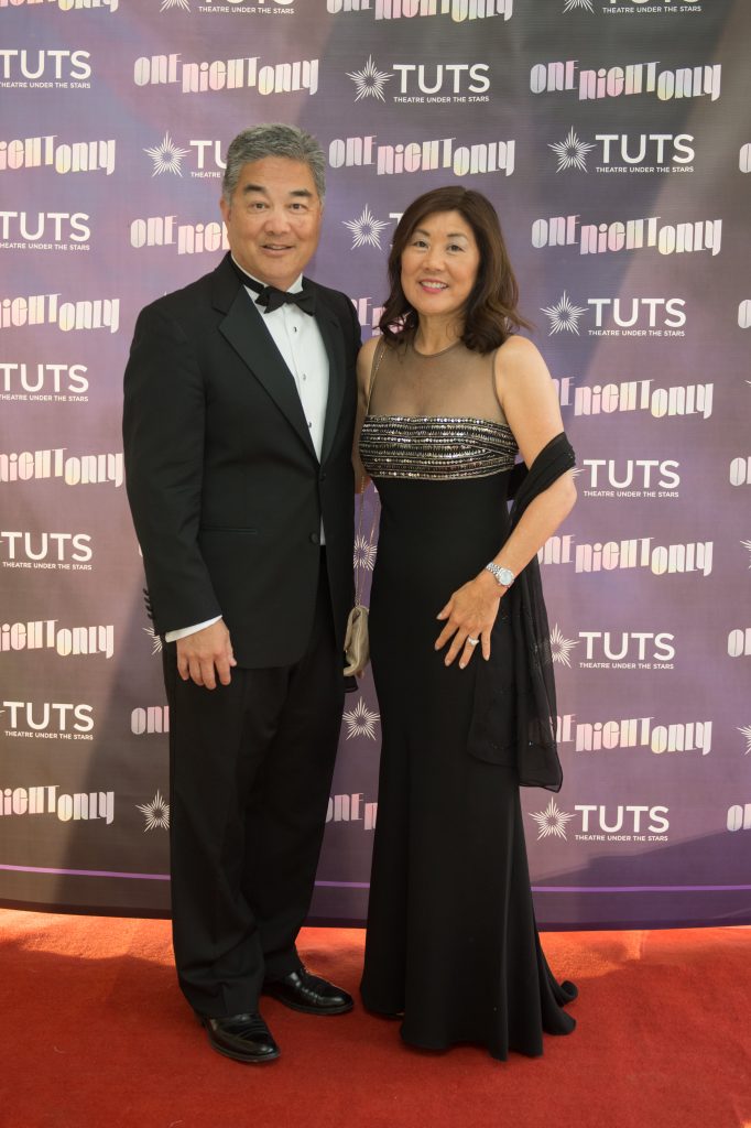 Guests were invited to dress in Dreamgirl fashion, which many did, creating a sparkling tableau ruled by sequins, beading and the occasional feathered boa. Few did it better than co-chair Paul-David Van Atta, who copped a golden sequined and beaded jacket for the evening from the TUTs prop room. Even tablecloths on the stage of Sarofim Theater, where dinner was served, were dressed in sequins, at least those that were not dressed in cloths of purple rosettes. In fact, there was so much purple, it could have been a Prince salute. Dinner plate chargers, flowers and lighting all reflected the honoree’s penchant for purple. The sumptuous decor was compliments of The Perfect Touch.