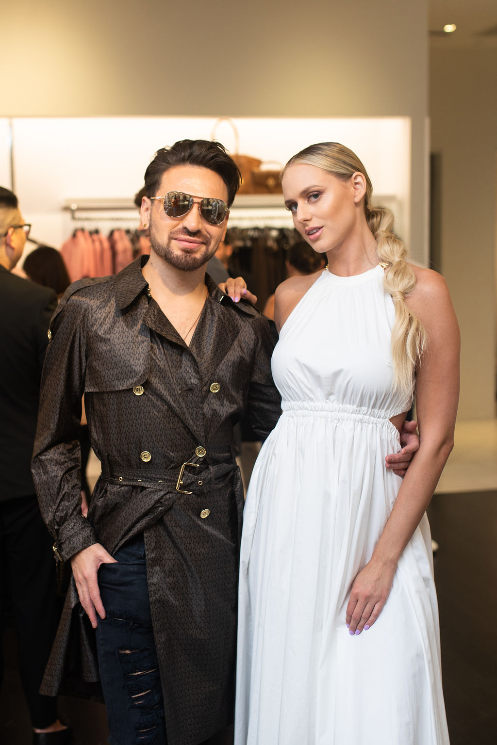 The evening featured models dressed to the nines in Michael Kors and coifs done by Volume Social Club’s Alexis Joubert and Gabby Saenz. Rather than a formal fashion presentation, the models mixed and mingled with partygoers.