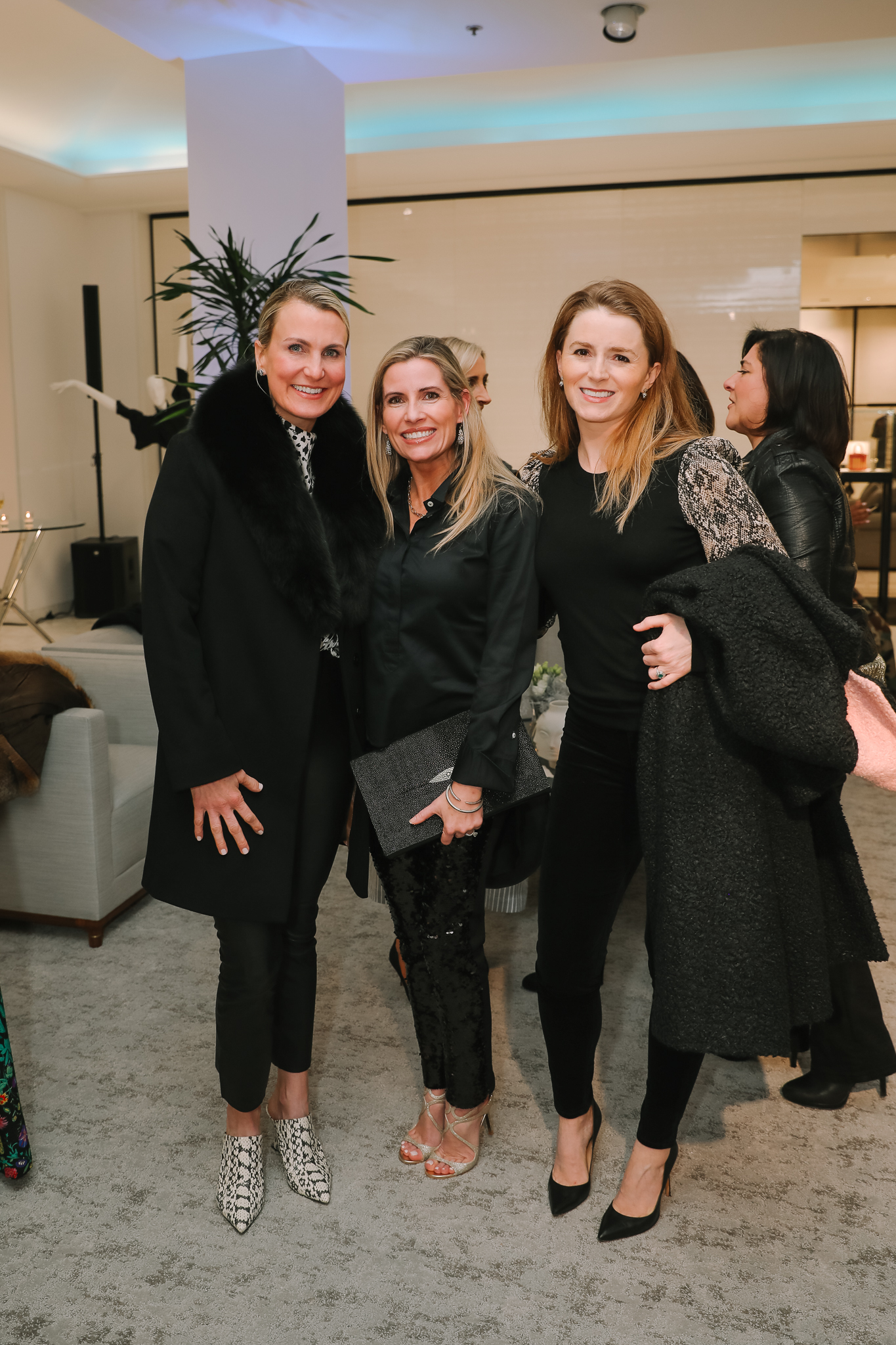 The ever-fashionables Katy Mayell Ellis, Emily Hanley and Hannah Swiggard were among those playfully posing for photos in front of the Houston Flower Wall Co.‘s frothy white floral canvas, which was emblazoned with the PaperCity logo in neon.