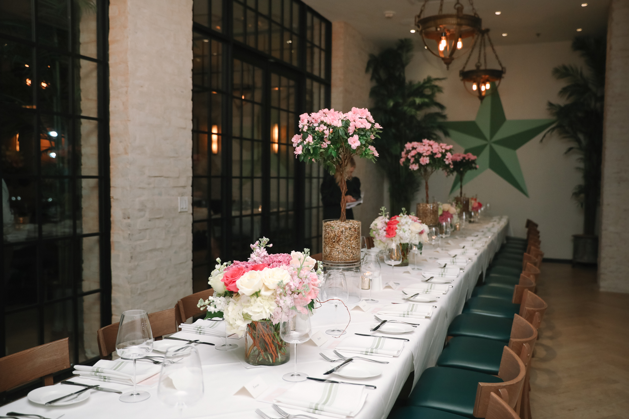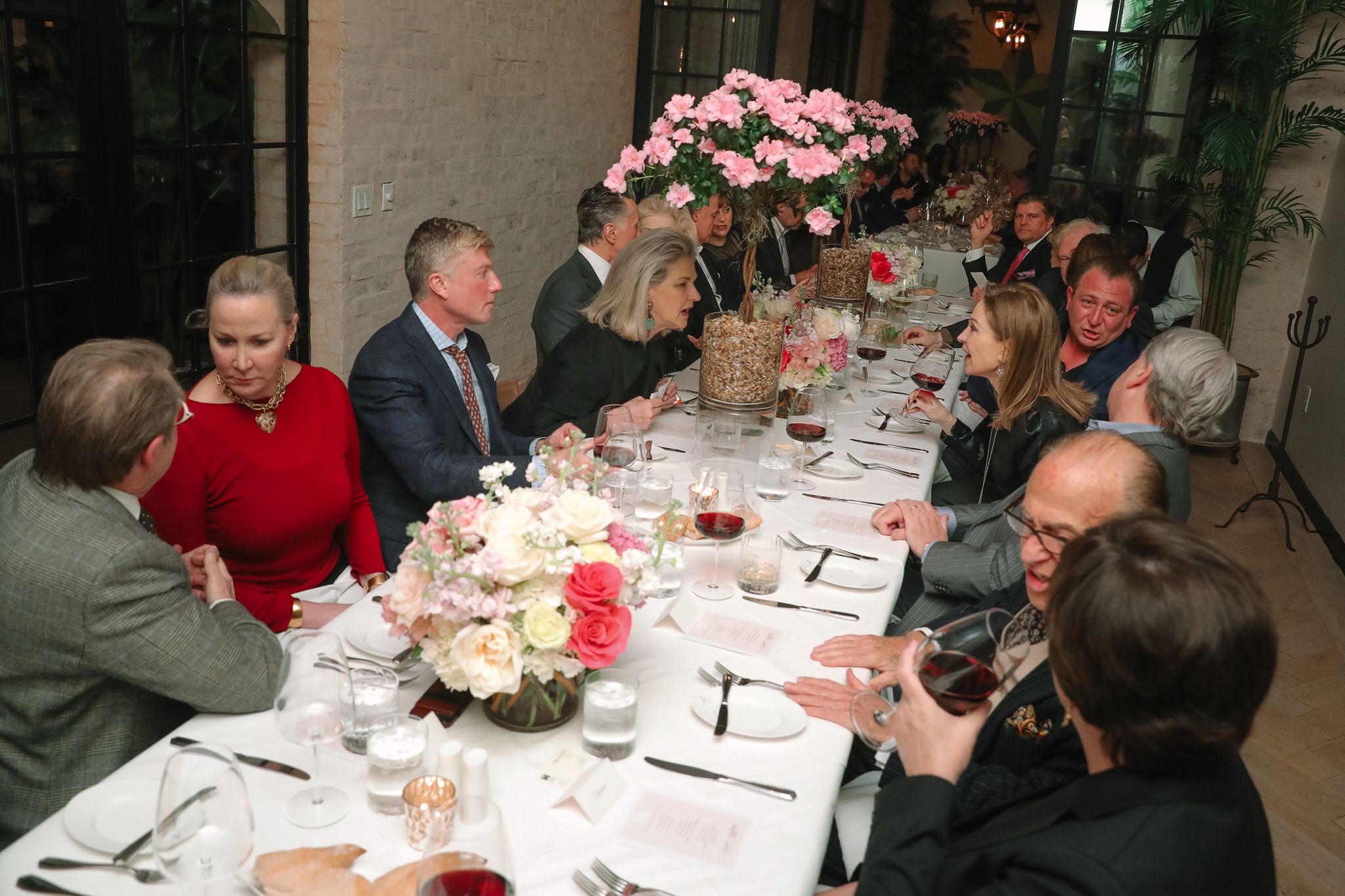 Following cocktails, the 50-plus guests adjourned to the Post Oak Room where John Friedman of his namesake floral business dressed two lengthy tables in azalea topiaries and bouquets of roses, hydrangeas and altamira. Chef del Grande exceeded the high culinary expectations with a three course feast that had diners swooning and those who couldn’t finish their meal boldly asking for doggie bags. (Beef for The Annie is sourced through B&B Butchers & Restaurant, thus those who ordered the filet were over the moon.)