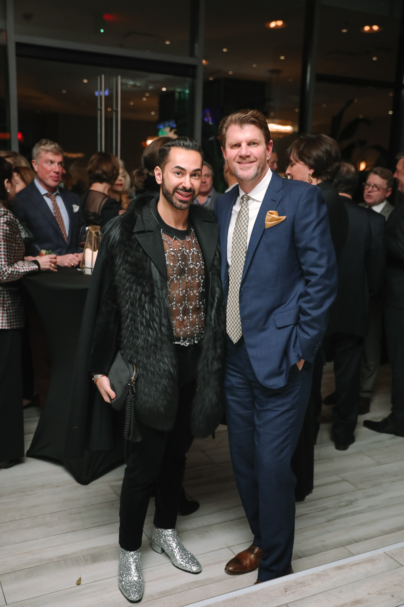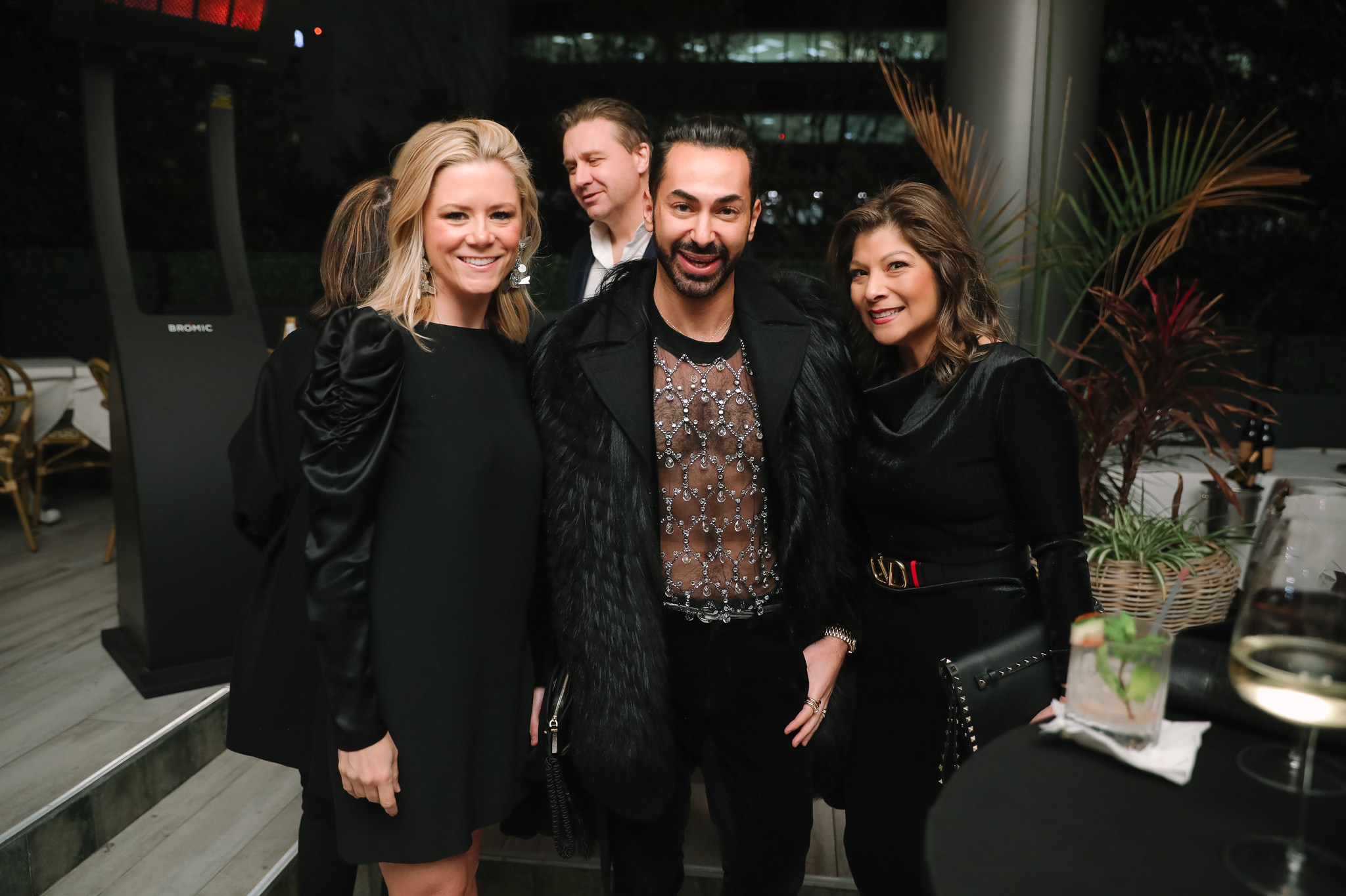 On this wintry night, ladies wrapping their cocktail attire in furs and gents bundled in cashmeres gathered beneath heaters on the restaurant terrace for rounds of watermelon margaritas and chef Robert del Grande‘s signature hors d’oeuvres. Among guests was Becca Cason Thrash, swathed in a lavish sable stole, who recalled the early days when she and PaperCity editor-in-chief Holly Moore transformed their special events company into a luxury media juggernaut.