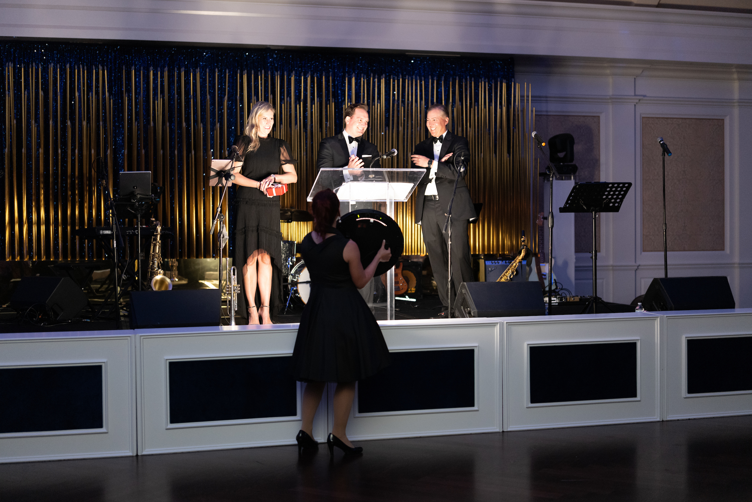 The relatively small, but dedicated, group numbering more than 150 raised more than $220,000. In celebration, they took to the dance floor encouraged by the vibrant sounds of the David Caceres Band. A member of the band on sax entertained during the darkened dinner hour.