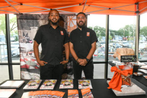 The party throng spread out across the expansive restaurant/bar spilling over onto the 1,200 square foot patio with its killer views to the downtown skyline. First-time visitors discovered an industrial yet comfortable space, designed by Studio Red Architects with interior touches and finishes by Erin Hicks. Adding to the party atmosphere, arrivals were greeted by a colorful collection of art cars, a nod to the night’s beneficiary, the Orange Show Center for Visionary Art,