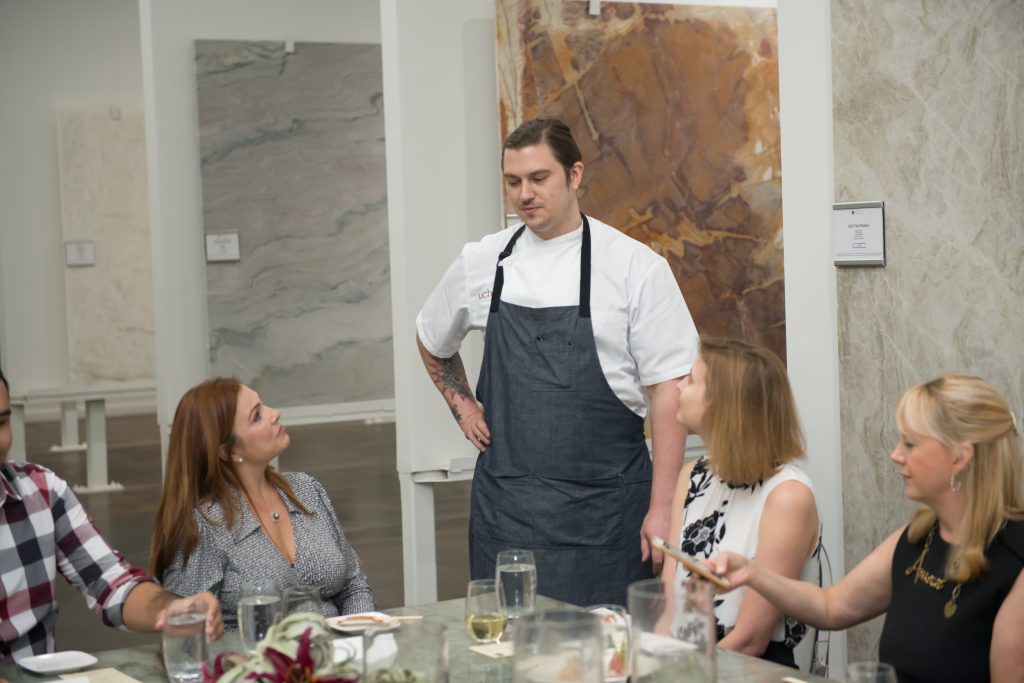 PC Moment: Uchi’s chef de cuisine Lance Gillum served eight opulent courses of Houston’s most buzzed-about sushi (including crowd-favorite dishes hama chili, nigiri, and uchiviche) amidst nature’s most beautiful stone. Interior designers and architects mingled, discussing projects, learning about stone from Aria Stone Gallery’s Vinny Tavares, and planning luxury stone buying trips.
