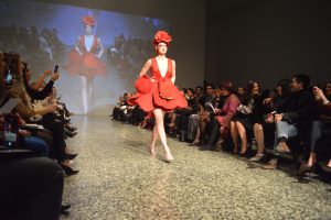 The much-heralded winners breathed a sigh of relief when they heard their names announced: Jing Cao, Inge Duran, Shanda Phillips, and Ebonie Sophus, who received the Audience Choice Award for her bold crimson ruffled gown, cleverly named “Oscar de la Ruffles.” These winners, who are all current HCC students, were awarded with one studio and one art history course from the museum’s Glassell School of Art. Additionally, top honors among the alumni group went to Erica Medrano, David Valdez, Teresa Rangel and Maria Hammond who all received fabric and sewing supplies from Martinez-Arpin Foundation.