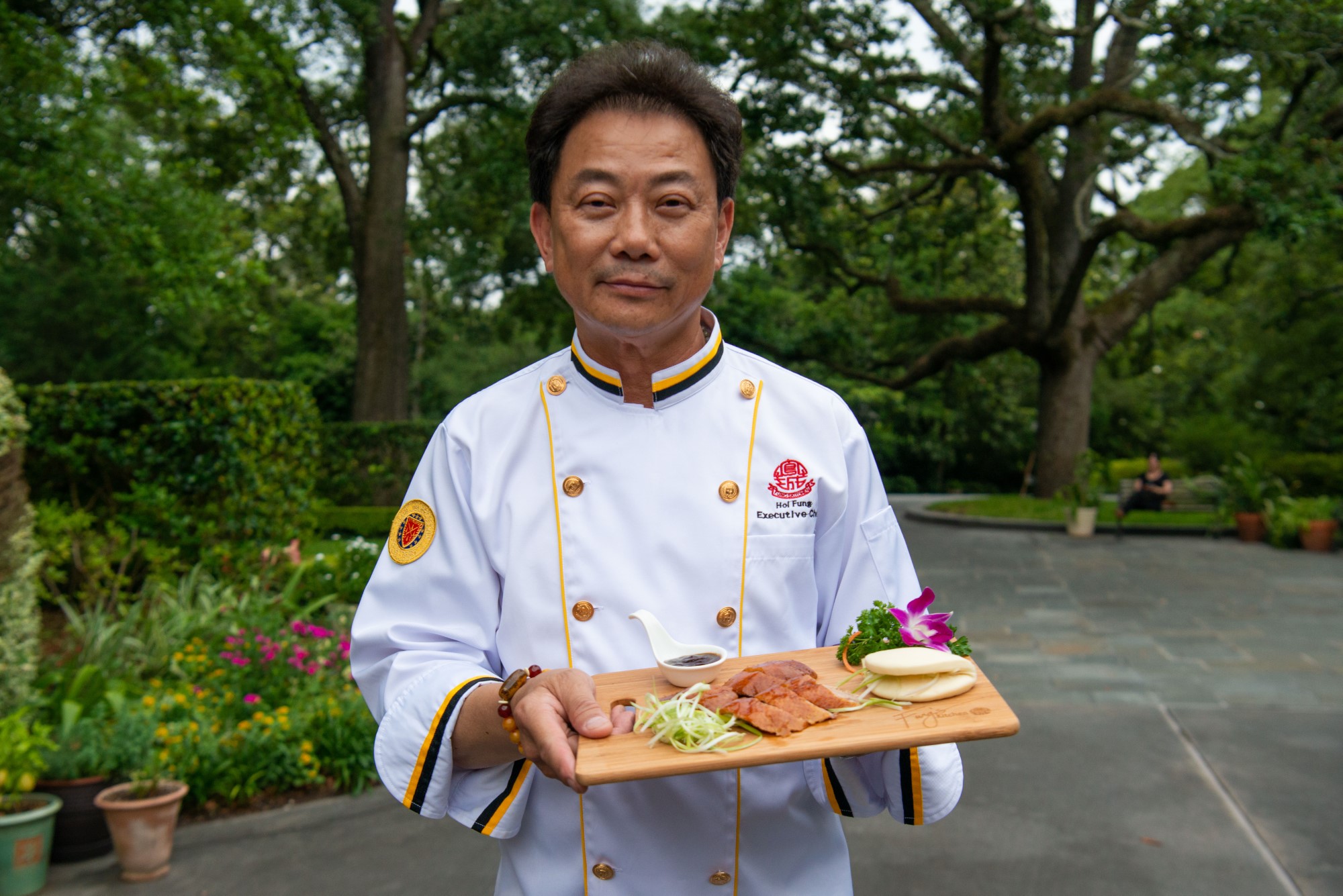 Chefs contributing their talents to the evening were Brandi Key (hot-smoked salmon canapes), Drake Leonards (Cajun Duck Poppers), Pedro Angel Garcia (saffron-infused paella with rabbit and shellfish), Ryan Pera (farinata topped with seasonal vegetables from Recipe for Success’ Hope Farms), Giancarlo Ferrara (zucchini-tomato bread topped with burrata mousse and roasted asparagus), Charley Ho, (ginger-scented bass in lemon grass, lobster and coconut sauce), Hoi Fung (crispy duck), Kiran Verma (rack of lamb with raspberry chutney), Hani Lae (chocolate mousse) and Greg Martin (lemon and tangerine meringue tart).