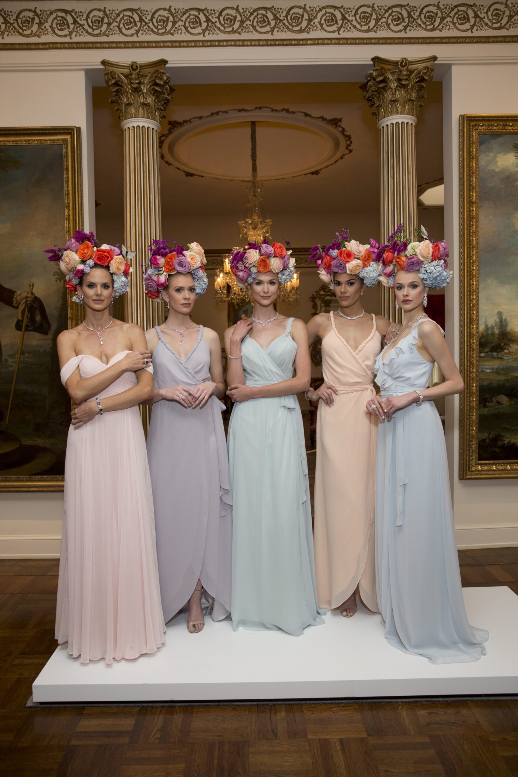 Janet and Will Cravens and Laura and William Kelsey chaired the evening that was chock-a-block with flowers — floral headdresses on the Harry Winston models, massive floral “H” and “W” initials floated in the pool and tabletops dressed in colorful spring blooms. The Events Company provided the decorative touches while Petal Society created the centerpieces.