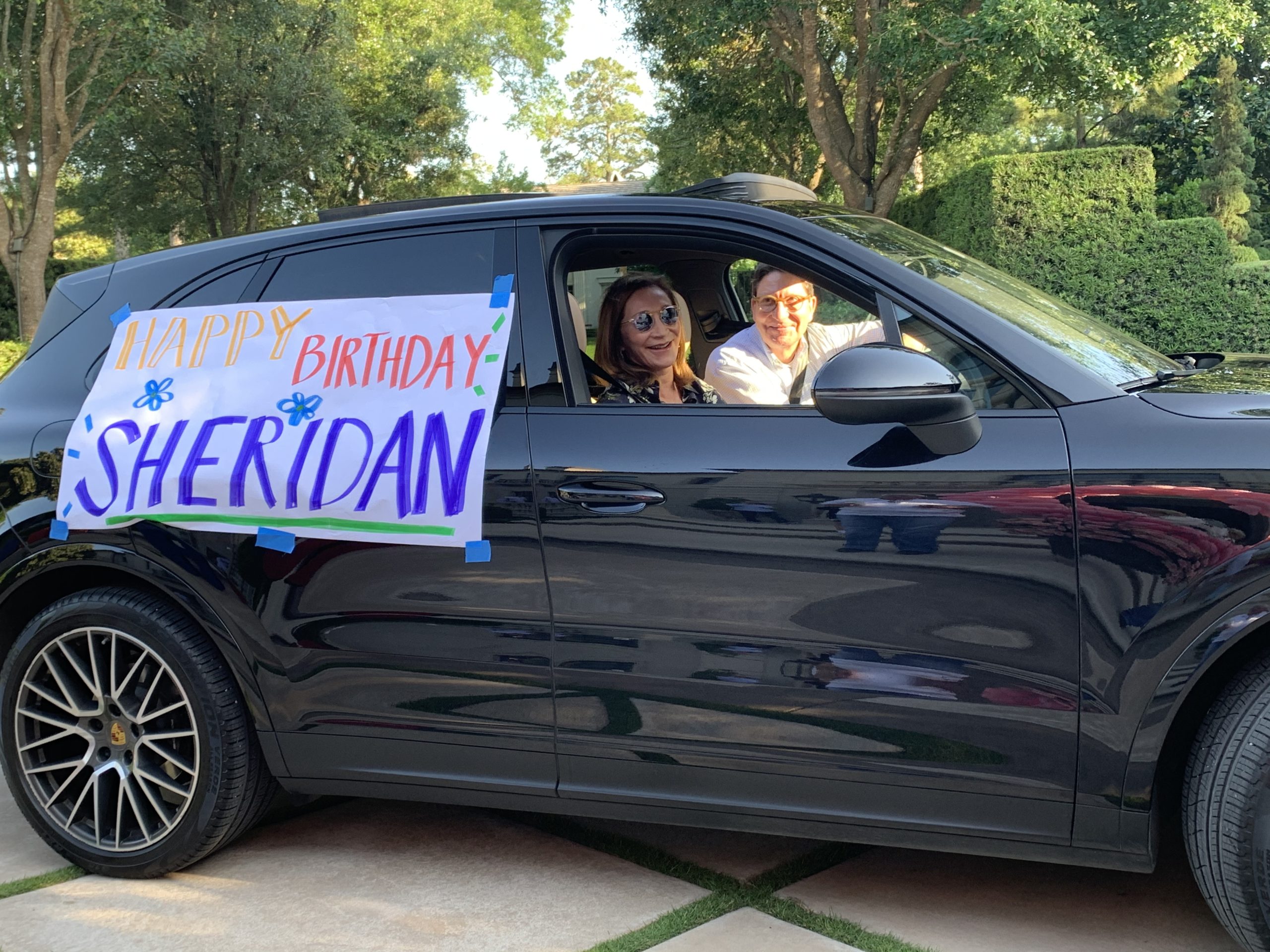 The timing of the two celebrations collided, and something had to give. Goodbye, Zoom (Sweeney claimed her Zoomer was down). Hello, birthday surprise — a birthday drive-by.