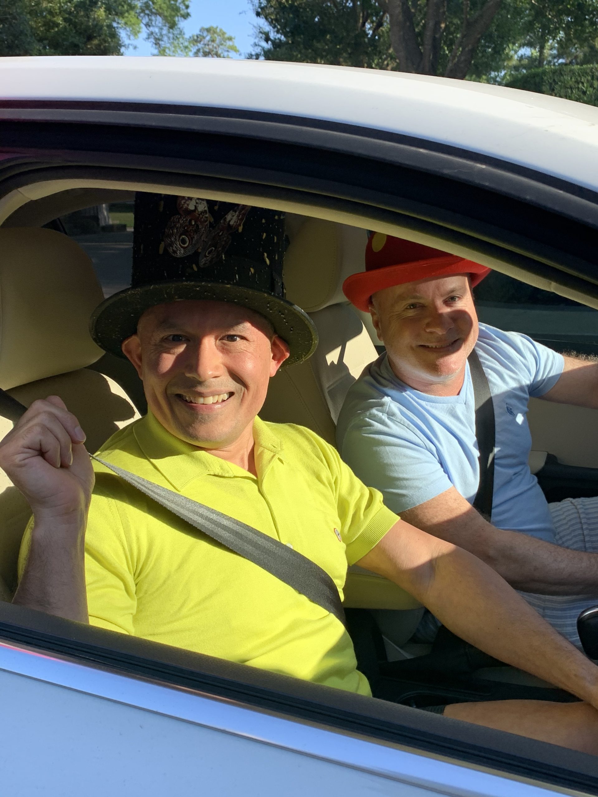 Soraya and Mr. H-E-B Scott McClelland pulled in to offer salutations through the car windows, as did beauty entrepreneur and powerhouse investor Janet Gurwitch with beau Ron Franklin, a partner with McGuire Woods. Rachel and Jeff Bagwell pulled through for a few minutes of cheerful chatter from a distance. Laura Sweeney and daughter, Juliette were among those passing through as did designer Randy Powers.