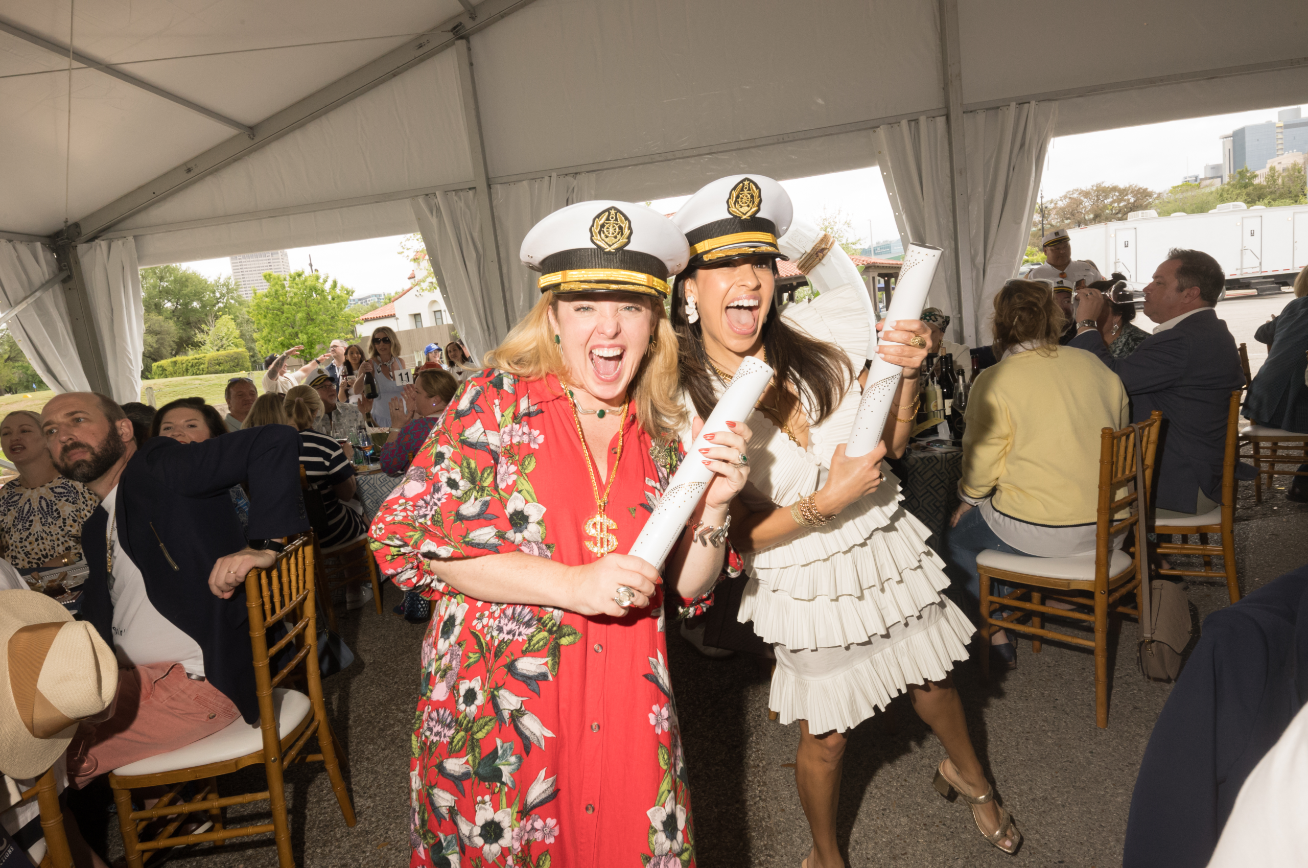 That added further high spirits to this Houston afternoon. Auction chairs Vanessa and Chuck Ames dubbed the festivities “Yachty by Nature” and suggested everyone dress accordingly. Thus, in the middle of a sophisticated wine auction there was a Best Nautically Dressed competition. That honor went to Natalie Vaclavik and Chef Seth Siegel-Gardner.