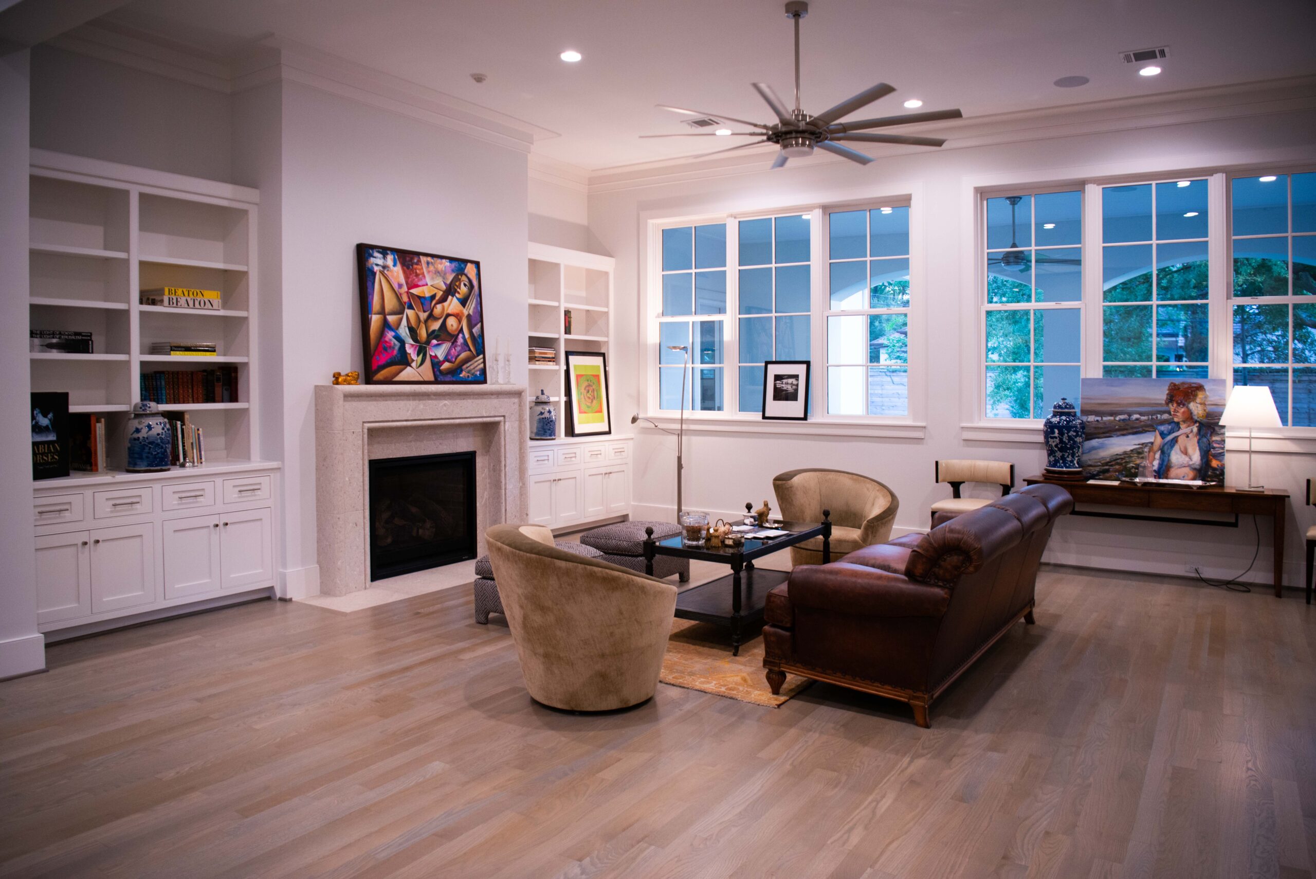 In the living room, antiques dealer Ernest Maese showcased an etching by George Braque, a John Hansegger still life and a Joan Miro lithograph. In fact, throughout the house, valuable artwork and furnishings from Lewis & Maese brought the various spaces to life.