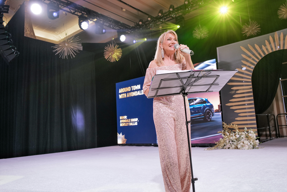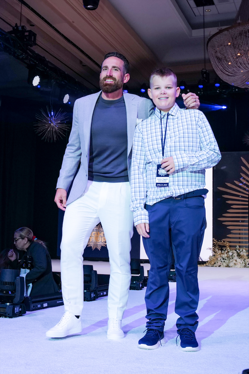 It was difficult to keep emotions from rising when the emcee for the evening, Meredith Land, introduced the young warriors as they stepped out in their Dillard’s looks. Hannah Bishara, a competitive figure skater who was first diagnosed with acute lymphoblastic leukemia at age 7, strutted her strength alongside the cast of her favorite TV show, The Chosen. Athlete and avid video gamer River Bray hopes to walk the moon once he’s cancer-free, and received pointers from his hero, a Blue Origin astronaut, on stage. Other escorts included legends like Troy Aikman and Dak Prescott – the event’s honorary chairmen – and celebs like “bag snob” Tina Craig, Nicky Hilton, and Kathy Hilton (Paris, for her part, left a video message encouraging the kids to “keep sliving”).