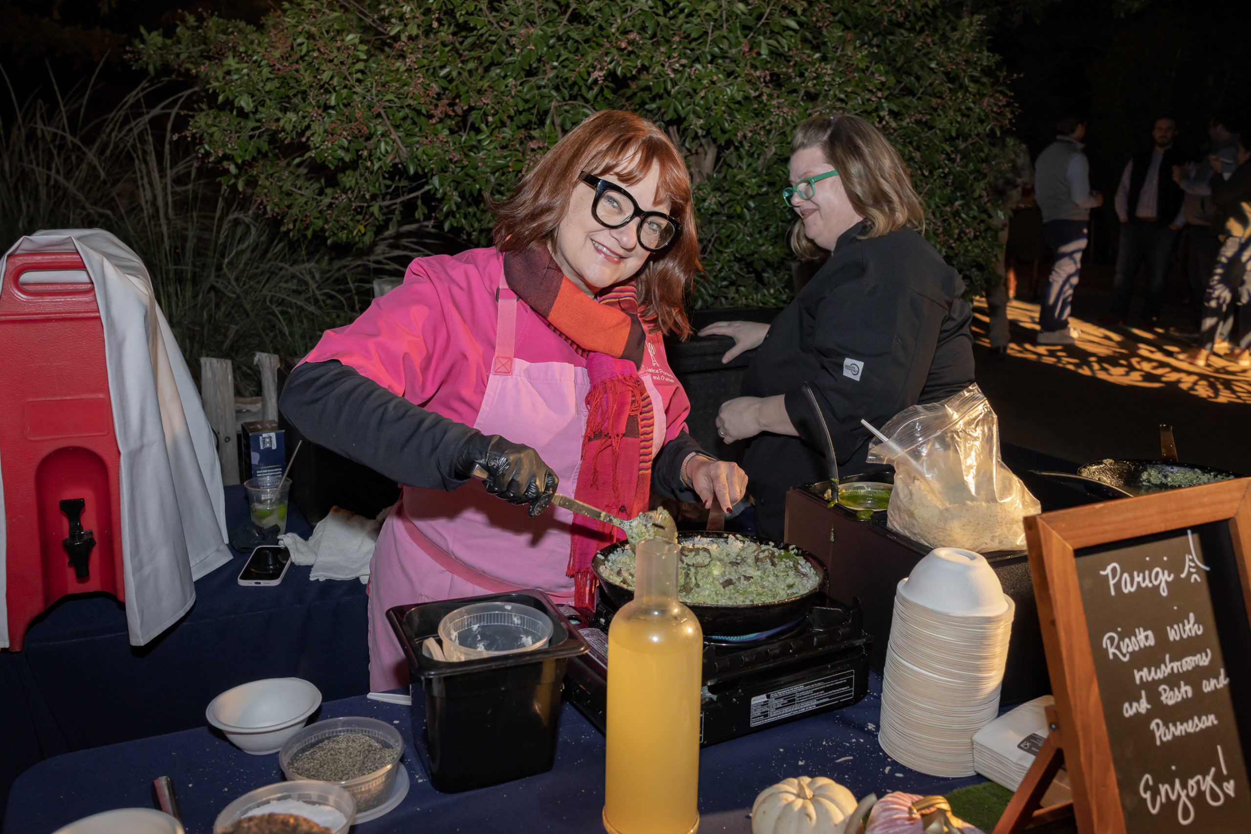 Just arriving is always a fun production as you are shuttled on one of the mini-trains through the tunneled entrance area (with a cool light show to get you in the party mood) to the main event. Cocktails and dishes prepared by some of North Texas’ greatest chefs were then on the agenda. On the lineup this year included Chef Sharon Van Meter/Beckley 1115, Chef Anthony Hsia/Ellie’s Restaurant & Lounge at HALL Arts Hotel, Chef Joe Shirghio/Bowen House, and two of my favorites — Chef Sara Toth from Neiman Marcus’ downtown Zodiac and Chef Janice Provost from Parigi.