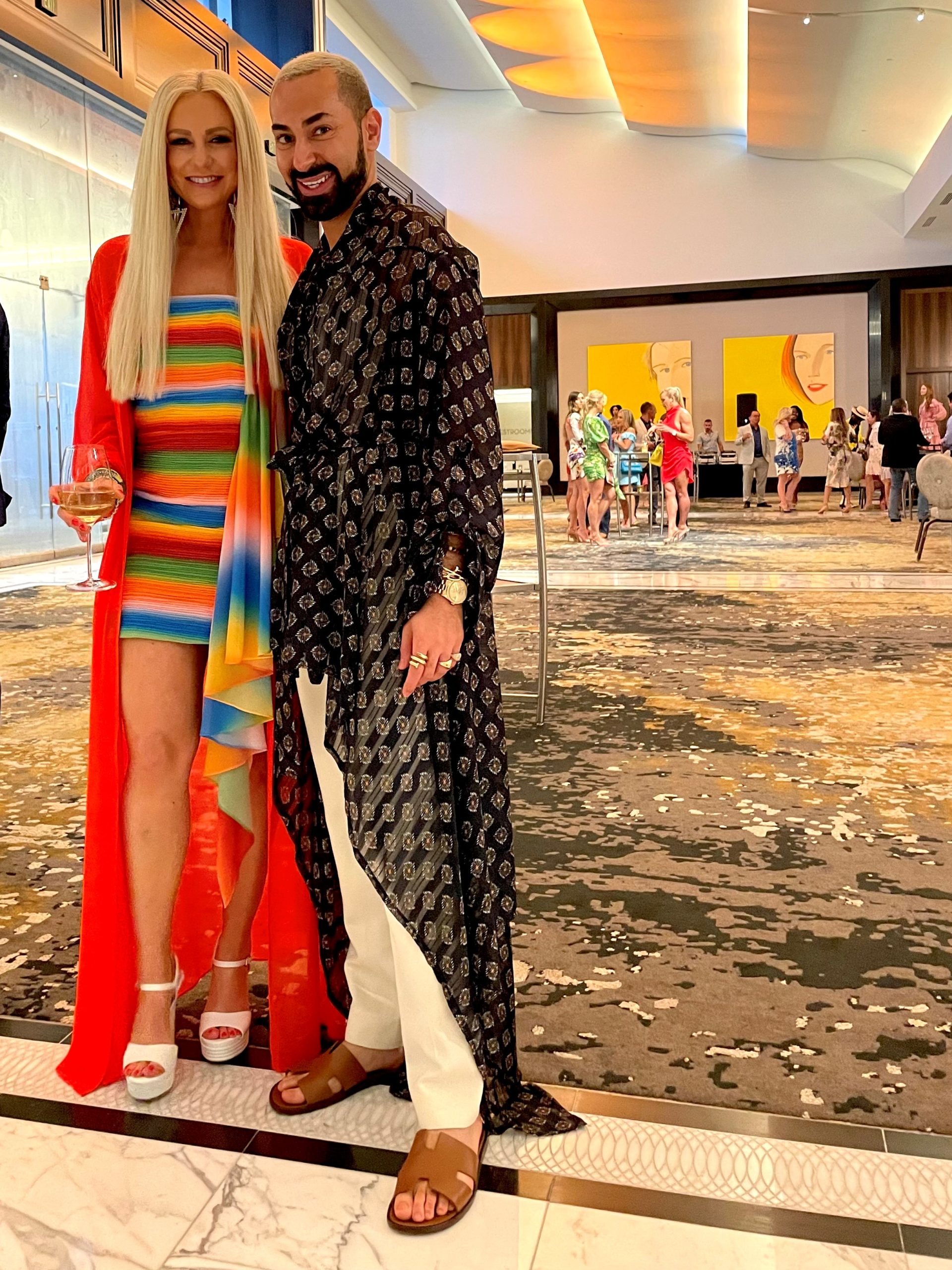 While DJ Joe Ross spun a lively soundtrack for the preening and wine tasting, Tootsies provided a colorful panoply of summer fashions with models posing on pedestals and strolling through the throng. All part of Kisha’s concept of Theorem Sauvignon Blanc — summer, fashion and fun. Adding to the fashion mode was a collection of vibrant jewelry from M.C.L. by Matthew Laurenza.
