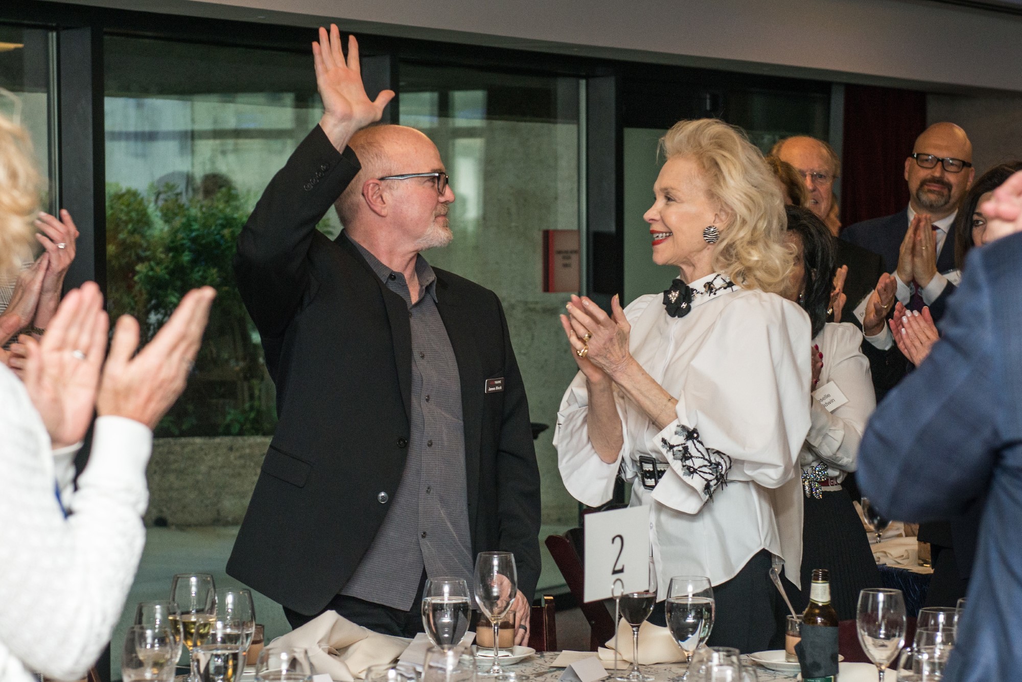 Prior to the curtain going up, the 170-plus VIPs sat for a dinner from A Fare Extraordinaire and heard from Alley managing director Dean Gladden and board president Butch Mach, who congratulated outgoing interim artistic director James Black on his remarkable season. Joining in the program was The Three Musketeers director Mark Shanahan, longtime friend of Black and fan of the Alley.