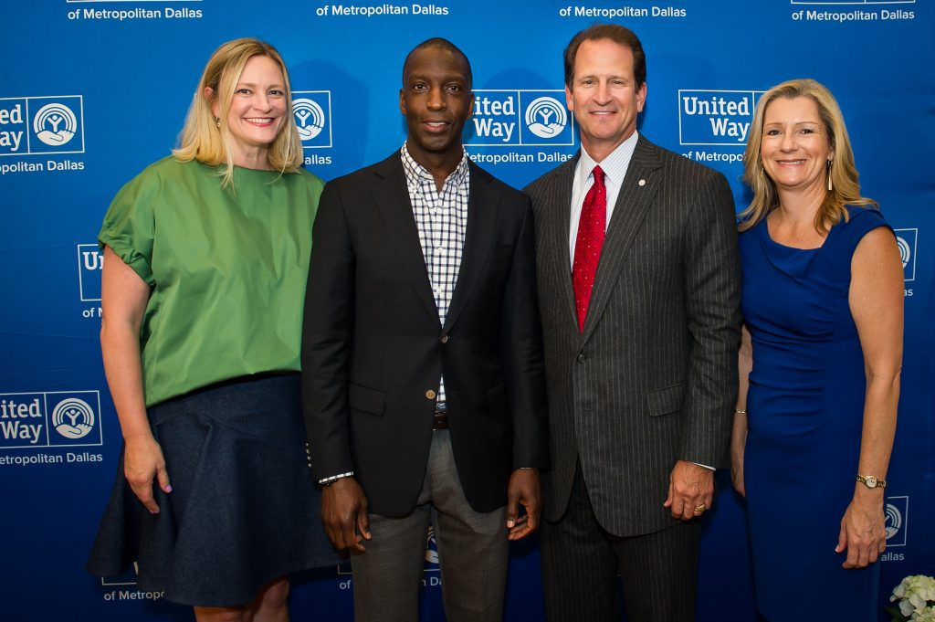 Who: United Way of Metropolitan Dallas president and CEO, Jennifer Sampson; keynote speaker and former gold medalist Michael Johnson; Bill Morrison, Susan Hoff, Gary and Sara Ahr, Ginger Allen, Angela Lang, Babe Laufenberg, Deb Gibbins, Kit Sawers, David Seaton, Lisa Bottle, Jennifer and Jerry Hilton Sampson, Julie and Jim Turner, Anne Motsenbocker, Cecily Gooch, Carole and Scott Murray, Thierry and Yvonne Bosson, and Betsy Dixon