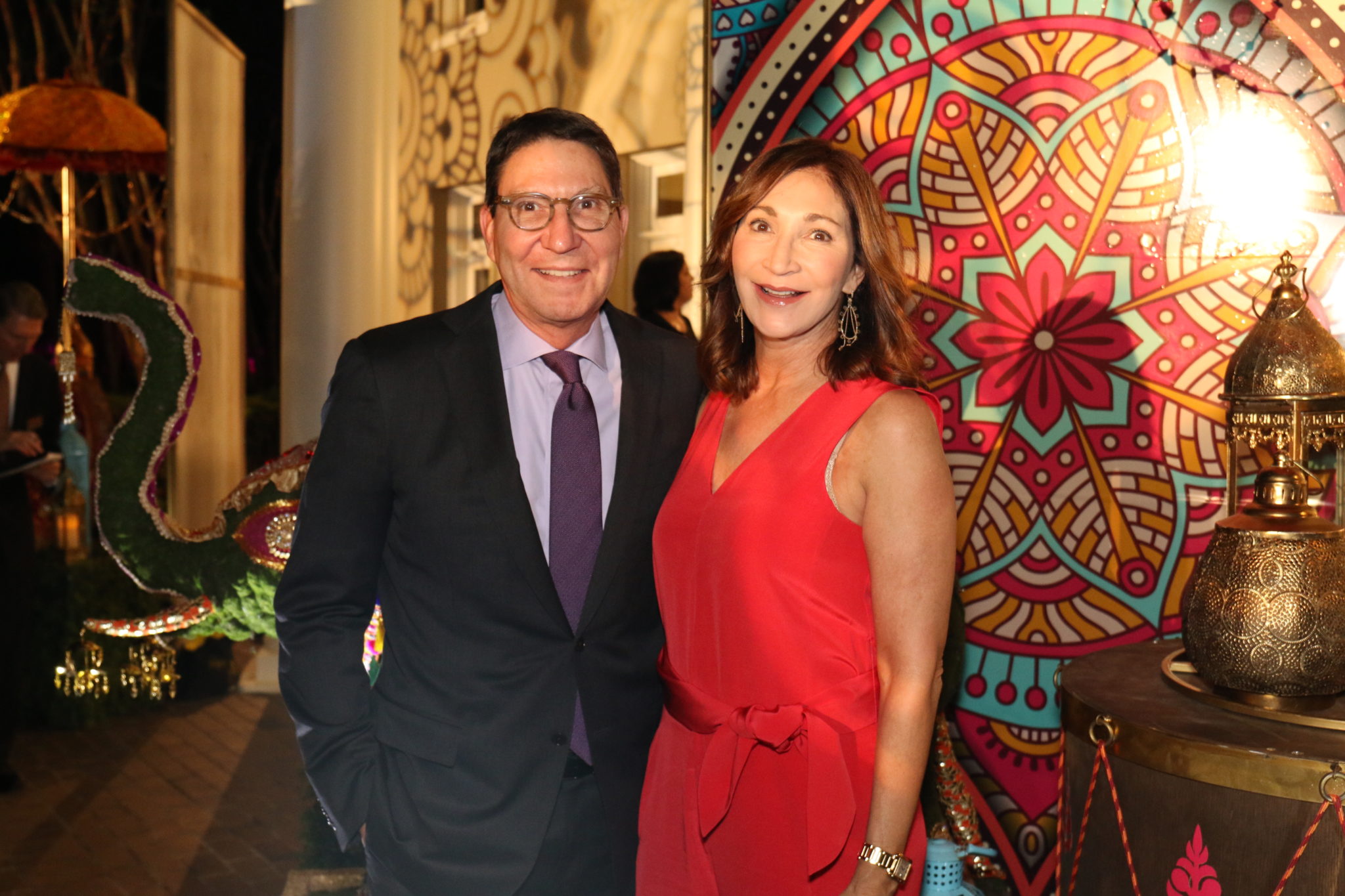 Thank you’s come in many forms, but few could be as exuberant as the Indian-themed soirée hosted by University of Houston System chancellor and president Renu Khator and professor Suresh Khator at the Wortham House, the UH System chancellor’s home. The colorful evening was a salute to volunteers and contributors to the $1 billion “Here We Go” campaign.