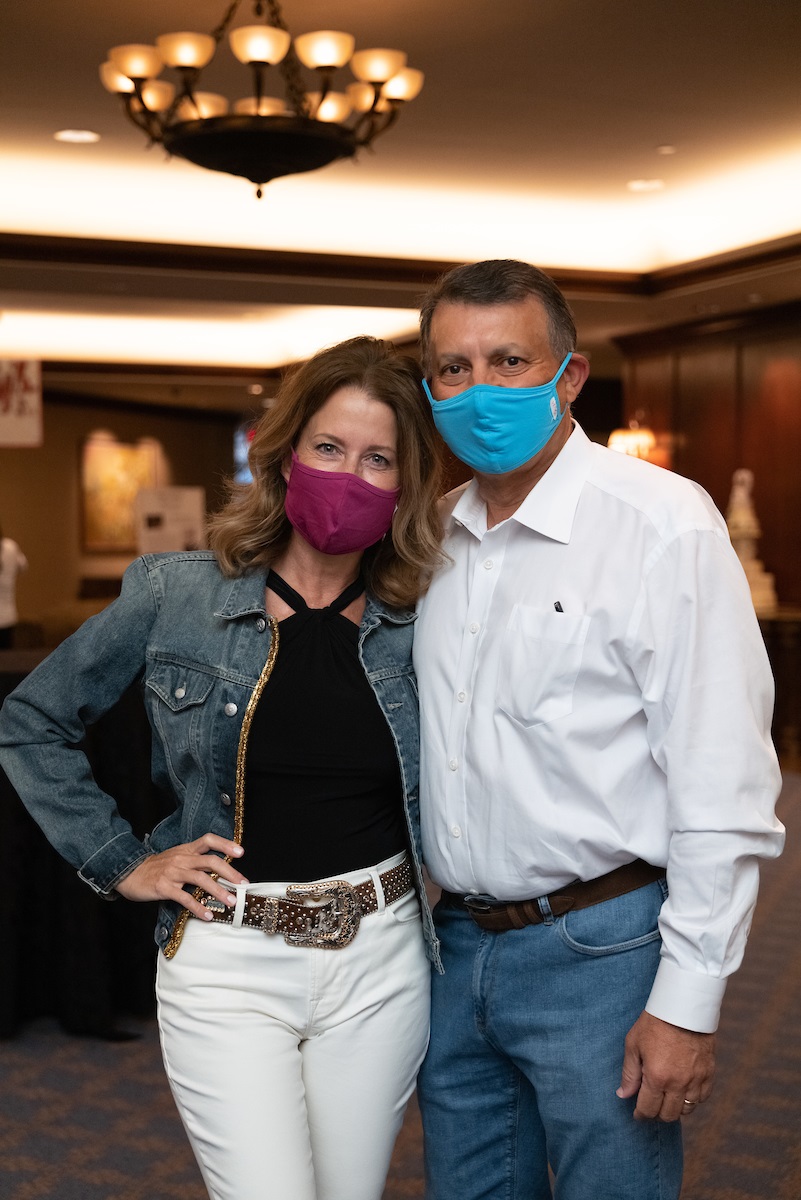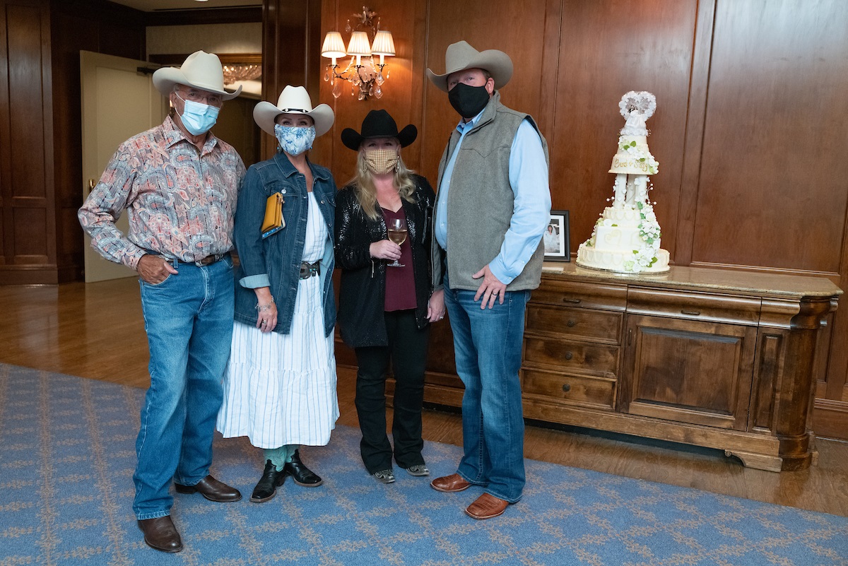 Guests dressed in western garb with cowboy hats and boots as the fashion of the hour, face masks required. Bandanas, anyone?