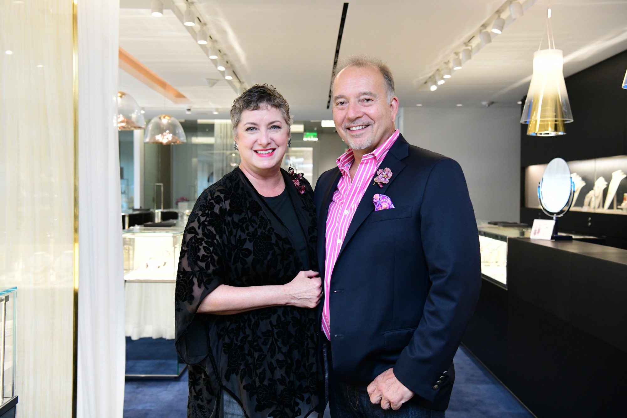On display for guests’ perusal were in-the-pink (a nod to the Memorial Hermann Breast Care Center) fashions from Tootsies and Buccellati jewels. A pair of stunning 18K gold and diamond “Daphne” floral earrings, donated by Tenenbaum, will be up for auction at the luncheon, which will take over the Post Oak Hotel.