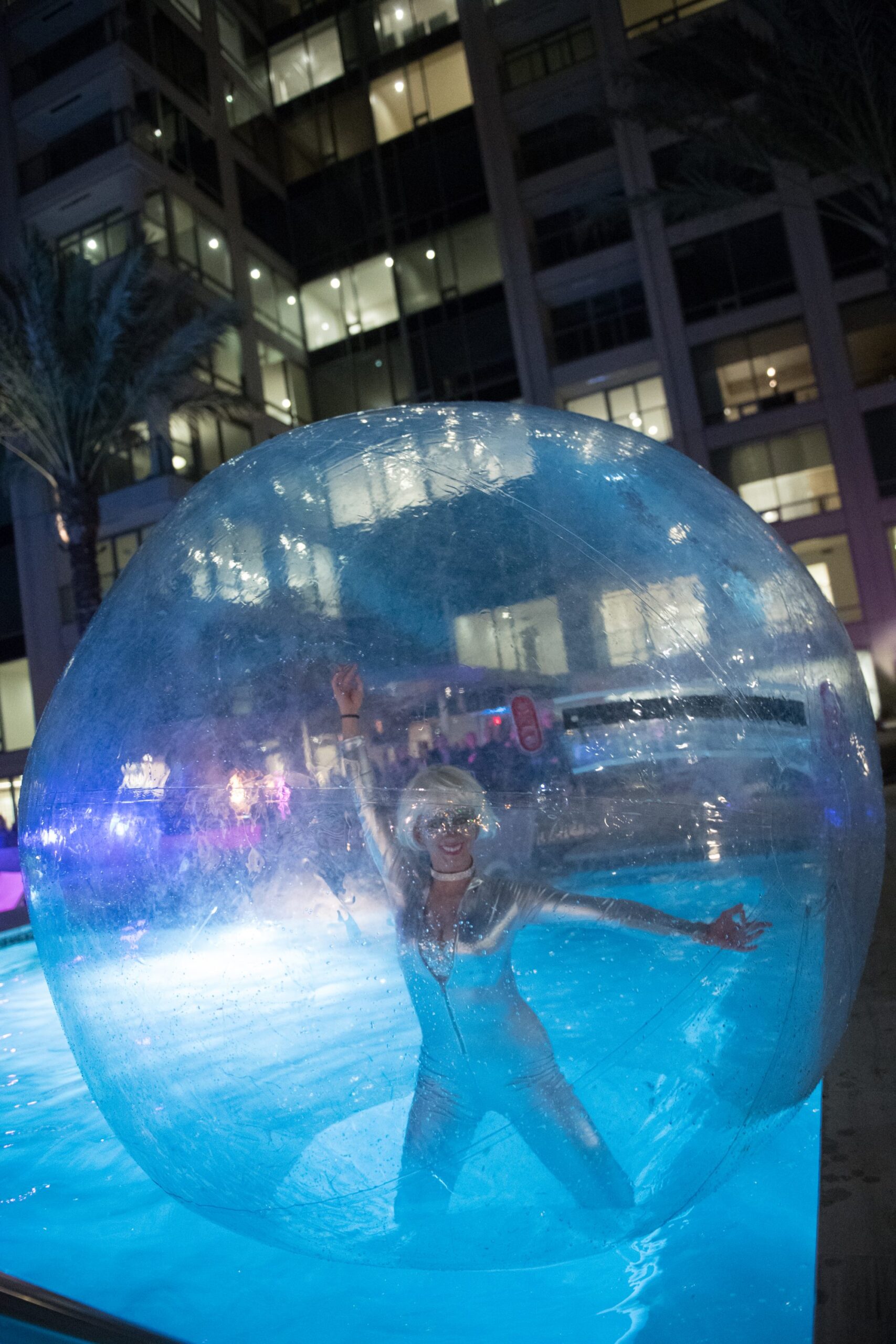 Future wave music was provided by BrandonD of the Night Drive duo while contortionist Rachel Reaneau performed her eye-popping routine inside a cirque sphere.