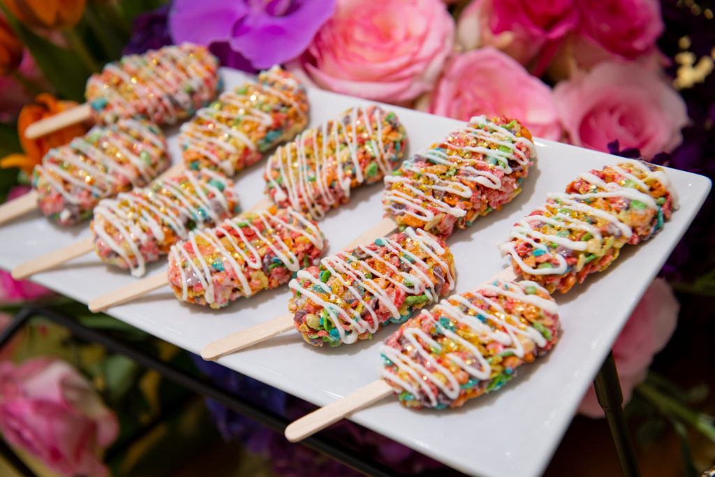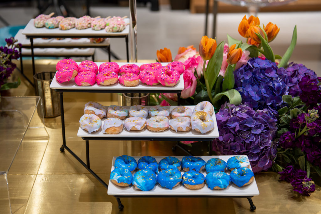All were enthusiastically on board with the idea that the more color — and the brighter — the better. This extended to everything from the tables of sweet treats (colorful swirled donuts dusted in glitter and gold stars and cereal bars drizzled with hot pink frosting) to the personalized aura photos and readings being done alongside glittering jewelry cases.