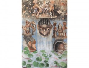 While known for his epic paintings — grand overviews that synthesize themes and iconography from the African continent with social realist issues from America swirling around the Civil Rights movement — Biggers’ show at Redbud focuses on more intimate work. “John Biggers: Maame” presents 30 pieces culled from private collections and offered for acquisition, ranging across all media, including paintings and works on paper. The latter encompasses drawings, prints and study sketches for larger canvases. Diverse themes are showcased, including works inspired by the artist’s game-changing trip to Africa in 1957, a visit funded by a UNESCO fellowship. (Biggers was one of the first black artists to make a pilgrimage to the continent.)